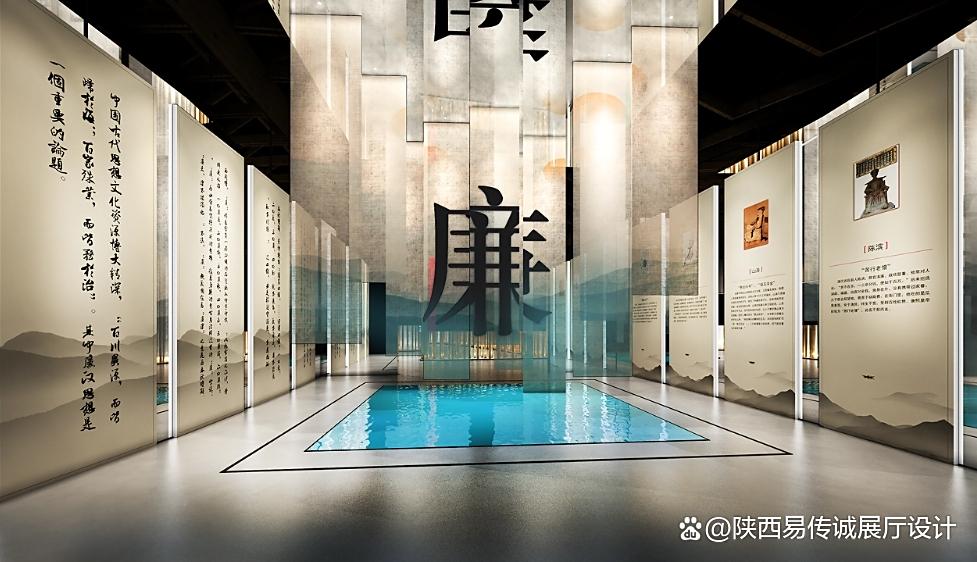 一、青莲意象的展厅设计理念:从传统文化到现代表达 陕西易传诚的廉洁教育基地设计以"莲·廉"文化为主线,通过三个维度诠释清廉本色: 视觉象征——以莲花、荷叶、水墨等元素构建清雅美学空间。 精神隐喻——通过"莲心如玉""步步生莲"等互动环节,传递廉洁价值观。 科技赋能——运用光影艺术、AR互动等技术,让传统意象焕发新生。